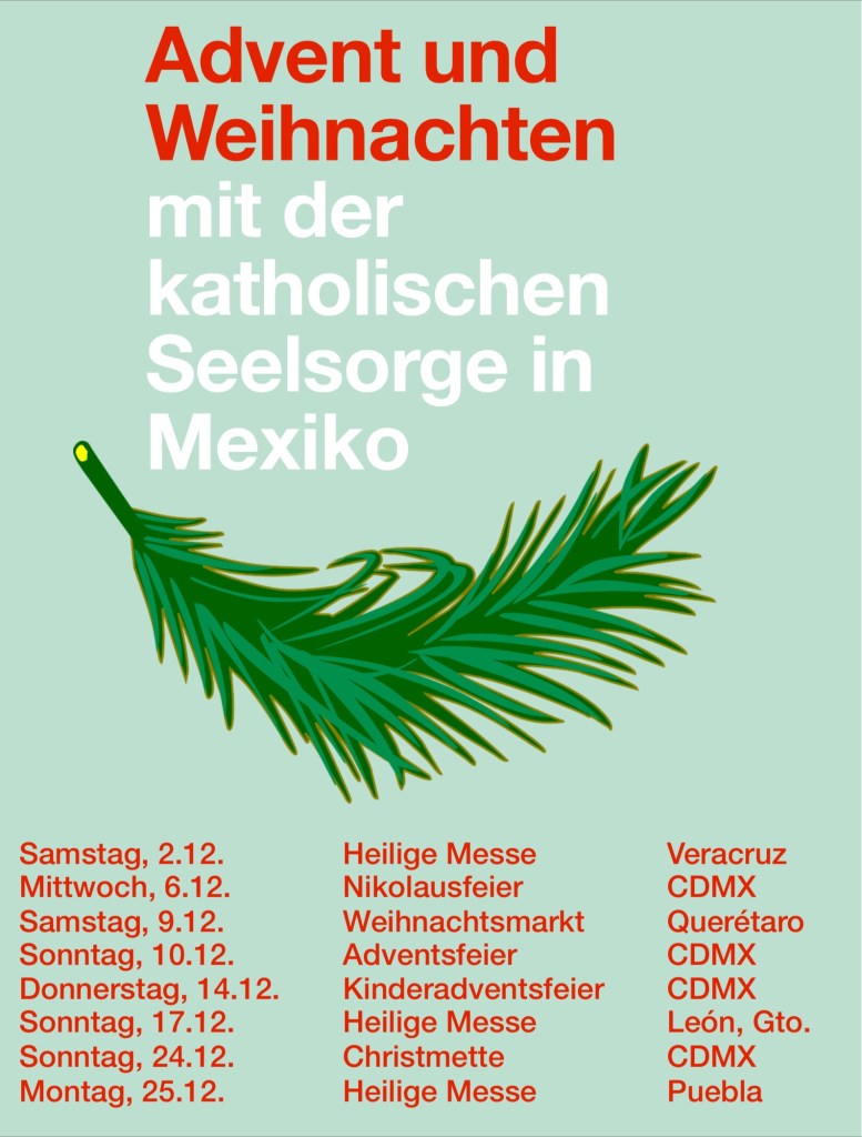 Herzlich laden wir zu den Veranstaltungen der Deutschen Seelsorge in Mexiko ein. Die Adventsfeier mit dem Deutschen Klub in Veracruz hat schon stattgefunden. Wir haben uns im Hotel Diligencias zu einer Hl. Messe mit Erstkommunion versammelt und im Anschluss einen Abend in fröhlicher Runde verbracht.