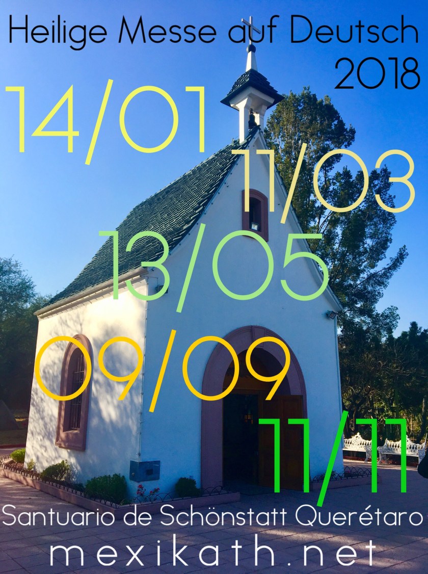 Im neuen Jahr sind die deutschen katholischen Gottesdienste in Querétaro an den folgenden Sonntag, jeweils um 17 Uhr im Schönstattheiligtum.