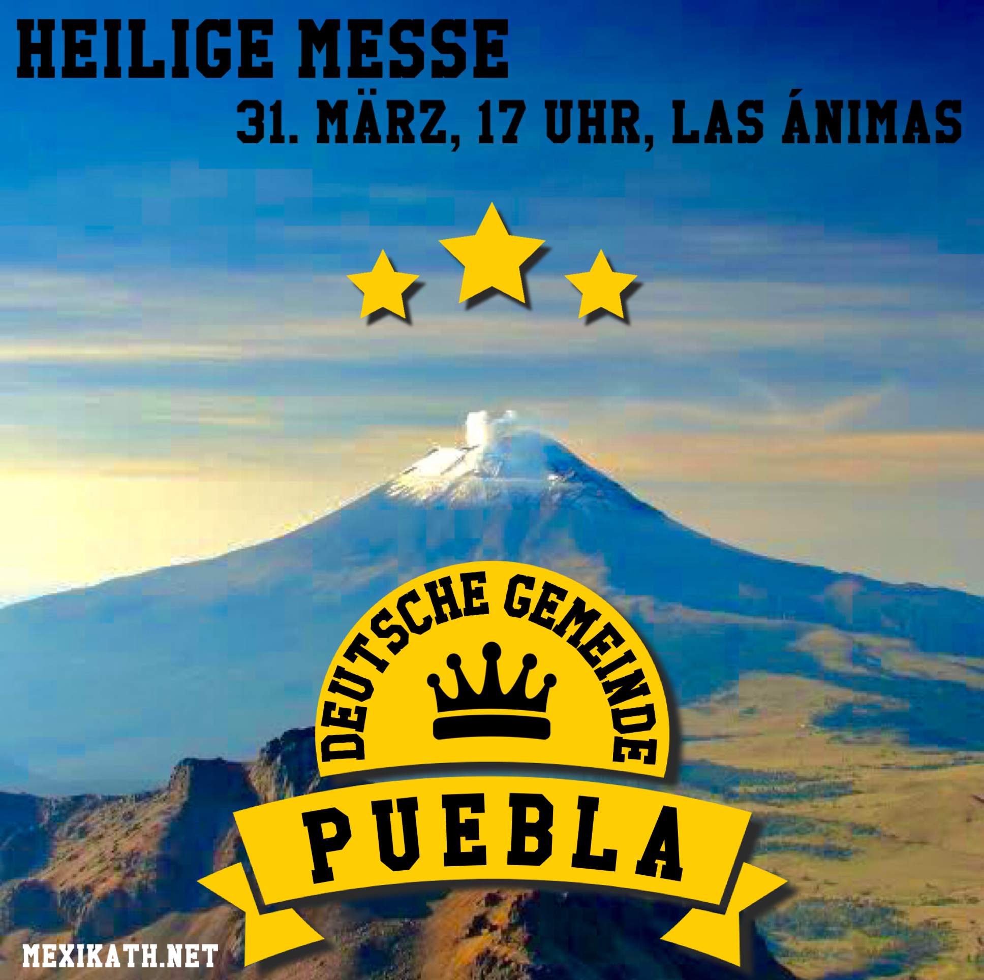 Am Sonntag, dem 31. März gibt es um 17 Uhr den nächsten deutschsprachigen Gottesdienst in Puebla. Wie immer treffen wir uns in der Kapelle unter der Kirche Nuestra Señora de las Animas im Circuito Juan Pablo II.