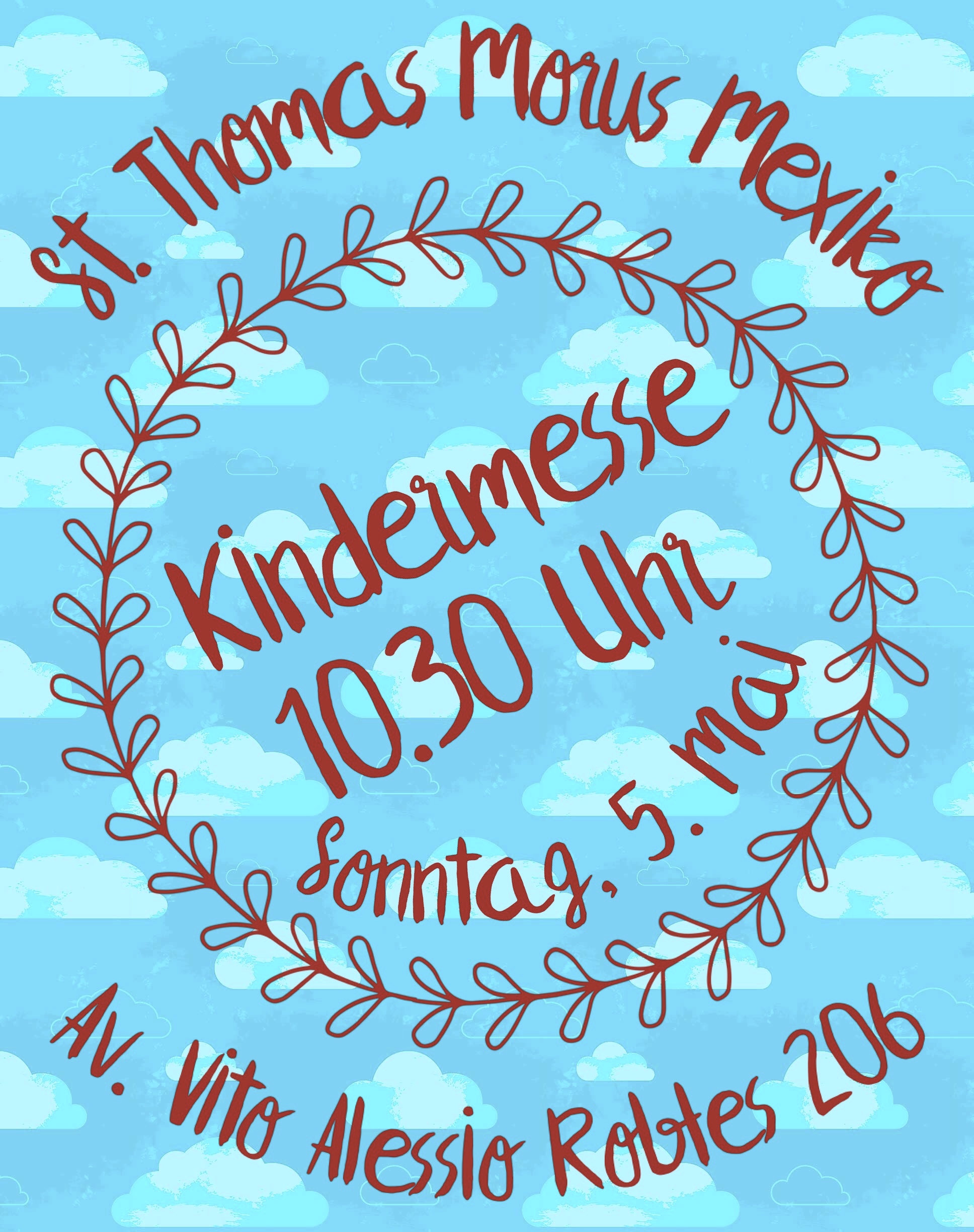 Am Sonntag, dem 5. Mai feiern wir die nächste Kindermesse in Mexiko-Stadt. Um 10.30 Uhr beginnt die Heilige Messe in deutscher Sprache in der Kirche St. Thomas Morus.