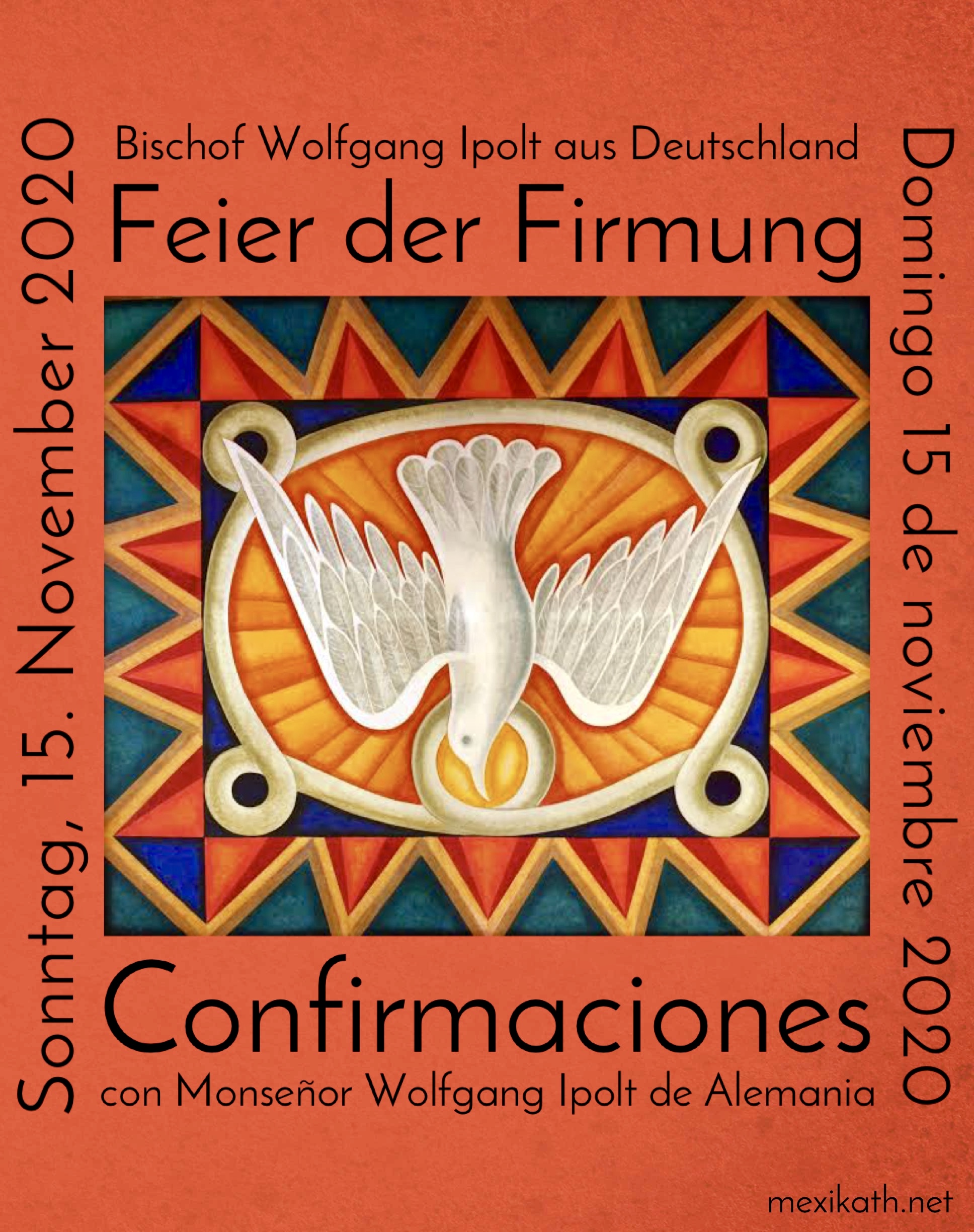 Para jovenes quienes quieren recibir este sacramento en el idioma alemán, habrá una oportunidad en el mes de noviembre del año 2020. La edad mínima es de 12 años cumplidos. El curso preparatorio va a empezar en octubre del año 2019. Nos va a visitar desde Alemania el obispo Mons. Wolfgang Ipolt. Para más información revise esta pagina.
