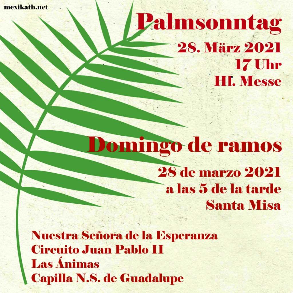 Am kommenden Sonntag, 28. März 2021 beginnt mit der Feier des Palmsonntags die Karwoche. In Puebla treffen wir uns zur Feier der Hl. Messe um 17 Uhr. Am Beginn der Zeremonie werden die Palmzweige gesegnet, mit denen wir dann in die Kirche einziehen.