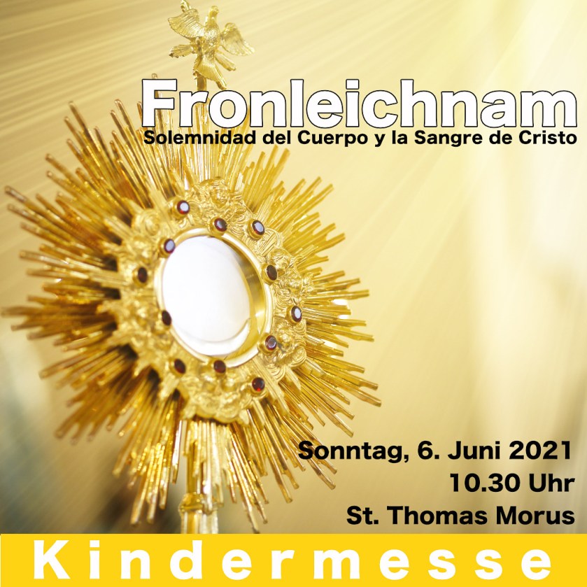 Am kommenden Sonntag, dem 6. Juni 2021 feiern wir das Fronleichnamsfest. Zur Hl. Messe um 10.30 Uhr sind besonders die Kinder mit ihren Eltern herzlich eigeladen. Wie immer treffen wir uns in der Kirche St. Thomas Morus in der Av. Vito Alessio Robles 206 in der Colonia Florída. Herzliche Einladung.