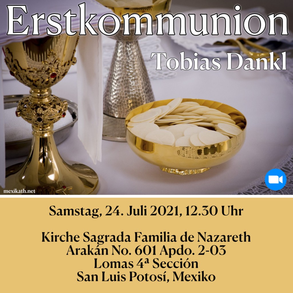 Alle Deutschen sind herzlich zur Feier der Hl. Messe in San Luis Potosí eingeladen. Am Samstag, dem 24. Juli 2021 um 12.30 Uhr wollen wir die Erstkommunion von Tobias Dankl feiern. Die Familie würde sich freuen, wenn noch ein paar Deutsche an dem Gottesdienst teilnehmen würden.