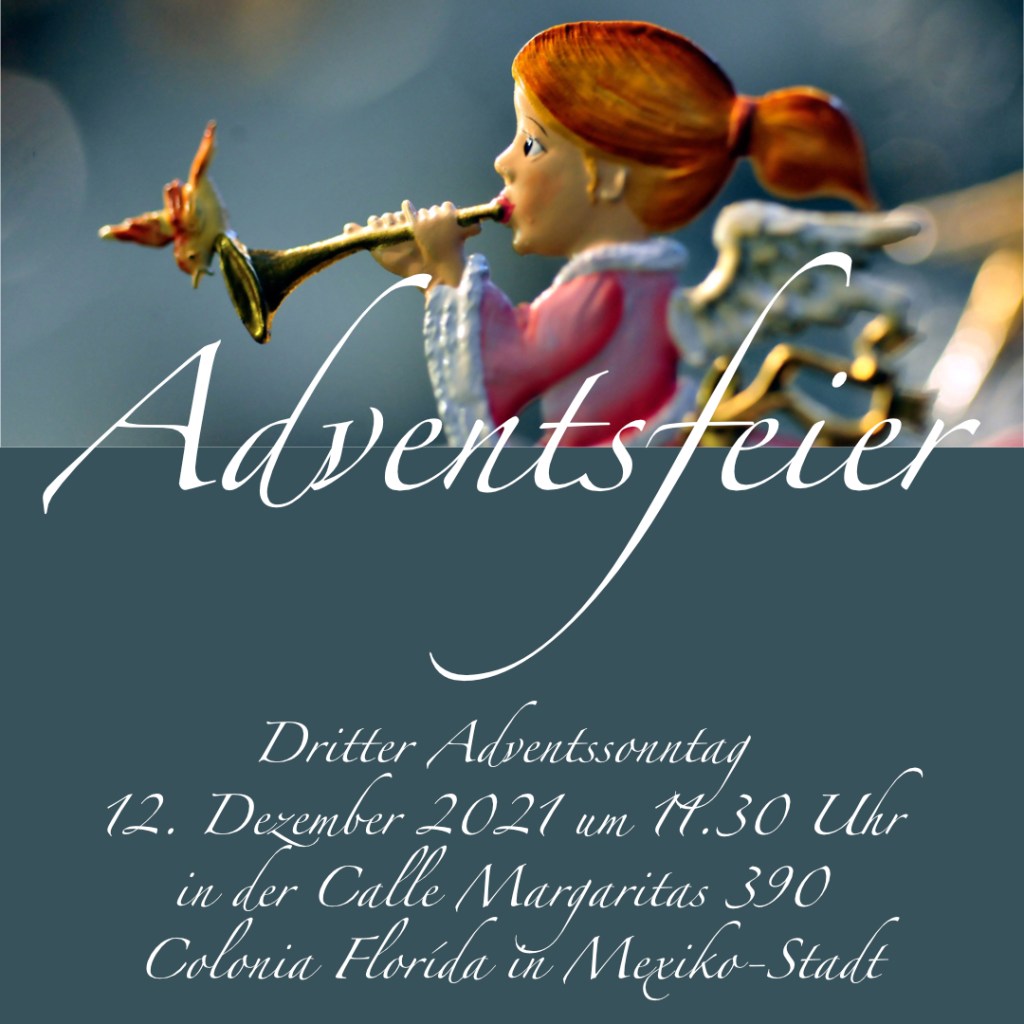 Herzlich laden wir wieder zur Adventsfeier ein. Am Dritten Adventssonntag, dem 12. Dezember 2021 treffen wir uns nach der Heiligen Messe gegen 11.30 Uhr im Pfarrgarten von St. Thomas Morus in der Calle Margaritas 390 in der Colonia Florída.