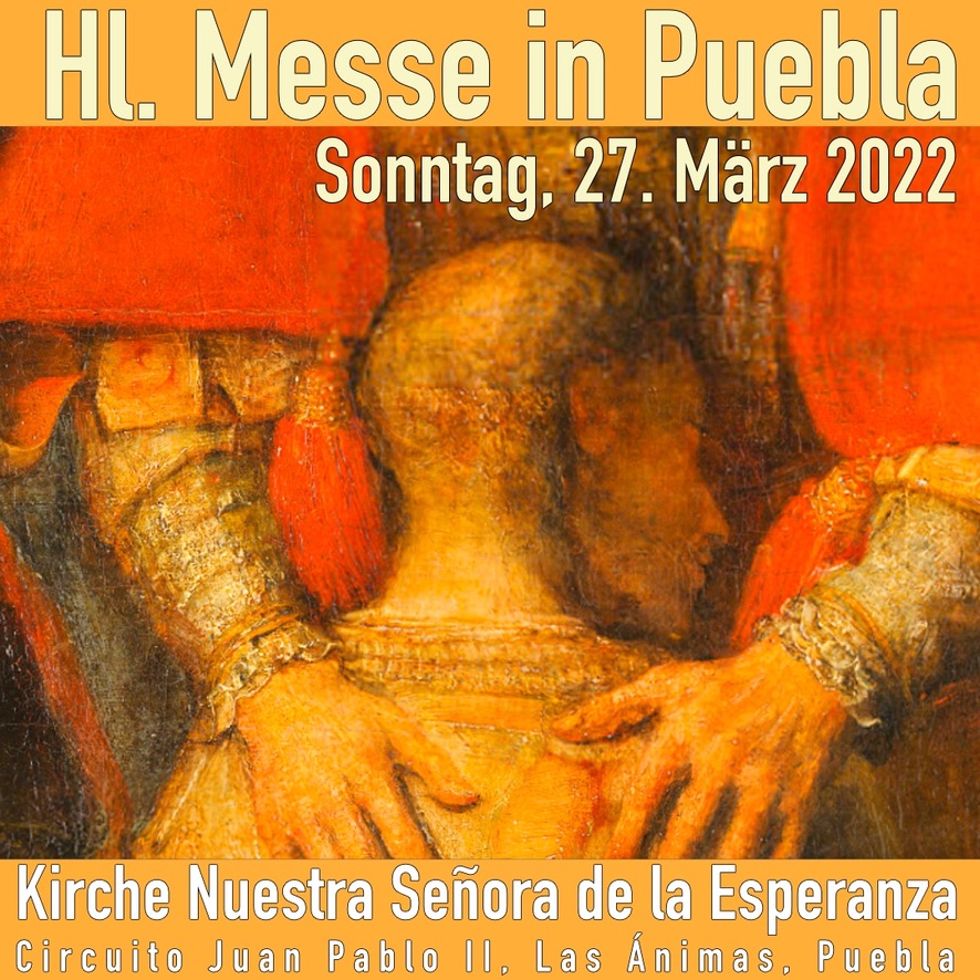 Die nächste Heilige Messe in deutscher Sprache in Puebla findet am Sonntag, dem 27. März 2022 um 17 Uhr statt. Der Gottesdienst wird in der Kapelle Nuestra Señora de Guadalupe unter der Kirche Nuestra Señora de la Esperanza gefeiert. Die Kirche befindet sich im Circuito Juan Pablo II in Las Ánimas.