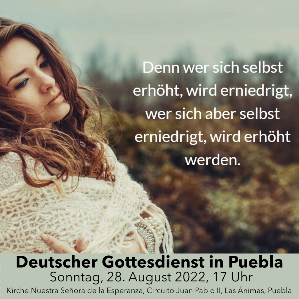 Con motivo del inicio de clases invitamos a todos a la próxima Misa en el idioma alemán en Puebla. El domingo 28 de agosto 2022 a las 5 pm nos reuniremos en la Capilla debajo de la Iglesia Nuestra Señora de la Esperanza en las Ánimas, Circuito Juan Pablo II. Todos los alumnos van a recibir una bendición especial para el nuevo ciclo escolar y un pequeño recuerdo. ¡Sean bienvenidos!