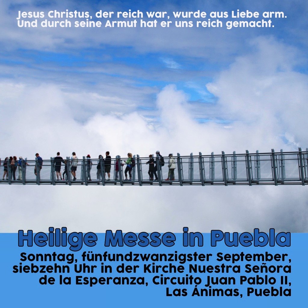 Alle Deutschen und alle Interessierten sind herzlich eingeladen zum Deutschen Gottesdienst, am Sonntag, dem 25. September 2022 um 17 Uhr in die Kapelle Nuestra Señora de Guadalupe unter der Kirche von Las Animas im Circuito Juan Pablo II. Herzlich Willkommen!