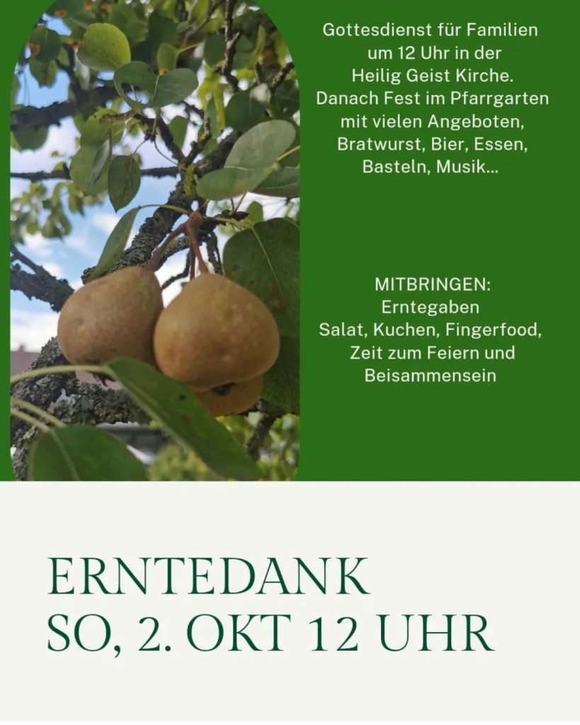 Zusammen mit unseren evangelischen Schwestern und Brüdern wollen wir das Erntedankfest feiern. Nach der Kindermesse am Sonntag, dem 2. Oktober 2022 in St. Thomas Morus wollen wir auf dem Kirchengelände der Heiliggeistkirche in der Calle Botticelli 74, 03700 Ciudad de México für die Ernte des Jahres danken. Herzliche Einladung!
