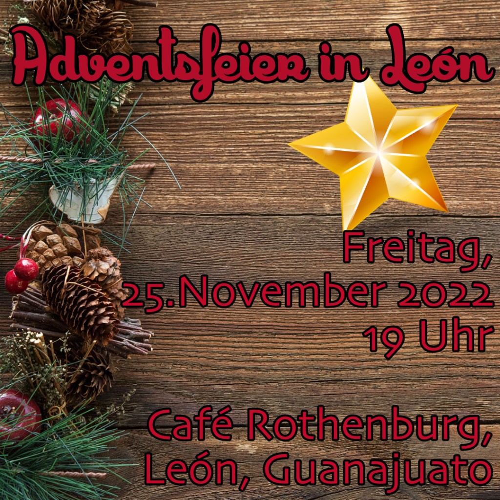 Zu einer Adventsfeier laden wir herzlich ein für Freitag, den 25. November 2022. Wir beginnen mit der Feier der Heiligen Messe um 19 Uhr im Café Rothenburg, Boulevard Juan Alonso de Torres Poniente, Av. Cantera 602, León.