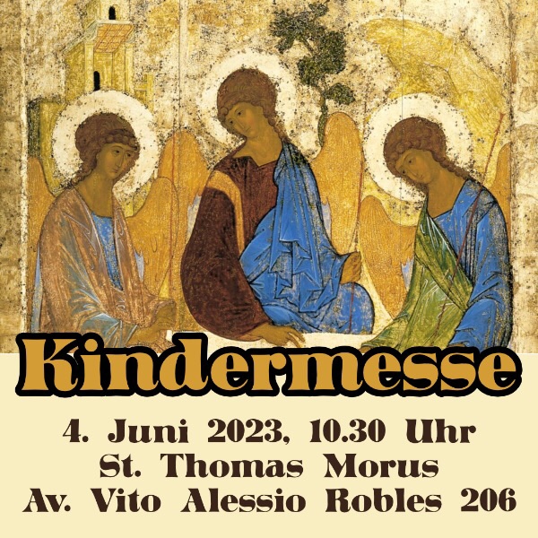 La próxima Misa de niños en el idioma alemán vamos a celebrar el domingo 4 de junio 2023 a las 10.30 am en la iglesia Santo Tomás Moro en la Av. Vito Alessio Robles 206, Colonia Florida. Sean todos muy bienvenidos. Por las vacaciones de verano no habrá Misa de niños en julio 2023.