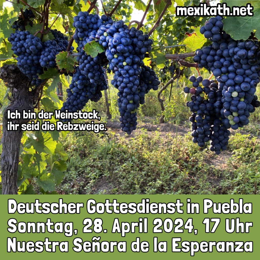 Im April ist der Deutsche Gottesdienst in Puebla am Sonntag, dem 28. April 2024. Wir treffen uns wieder um 17 Uhr in der kleinen Kapelle unter der Kirche Nuestra Señora de la Esperanza in Las Ánimas, Circuito Juan Pablo II.