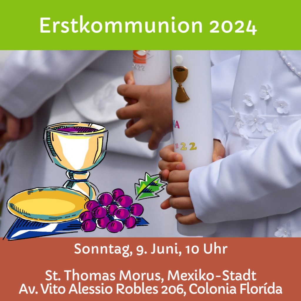 La Primera Comunión de la Comunidad Alemana en la Ciudad de México se celebrará el domingo 9 de junio 2024. La Santa empieza a las 10 am en el Templo de Santo Tomás Moro en la Av. Vito Alessio Robles 206, Colonia Florída.