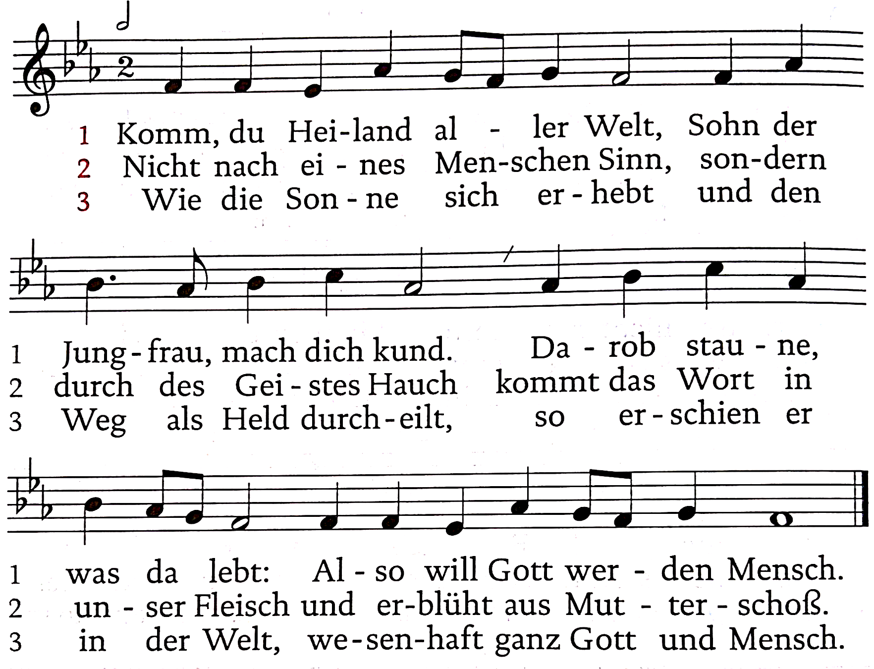 In Wahrheit ist es würdig und recht, dir, allmächtiger Vater, zu danken durch unseren Herrn Jesus Christus. Denn in seinem ersten Kommen hat er sich entäußert und ist Mensch geworden. So hat er die alte Verheißung erfüllt und den Weg des Heiles erschlossen. Wenn er wiederkommt im Glanz seiner Herrlichkeit, werden wir sichtbar empfangen, was wir jetzt mit wachem Herzen gläubig erwarten. Darum preisen wir dich mit allen Engeln und Heiligen und singen vereint mit ihnen das Lob deiner Herrlichkeit:
