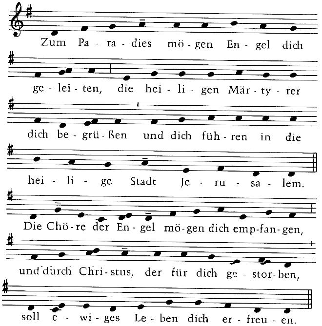 Christus nehme dich auf, der dich berufen hat, und in das Himmelreich sollen Engel dich geleiten.