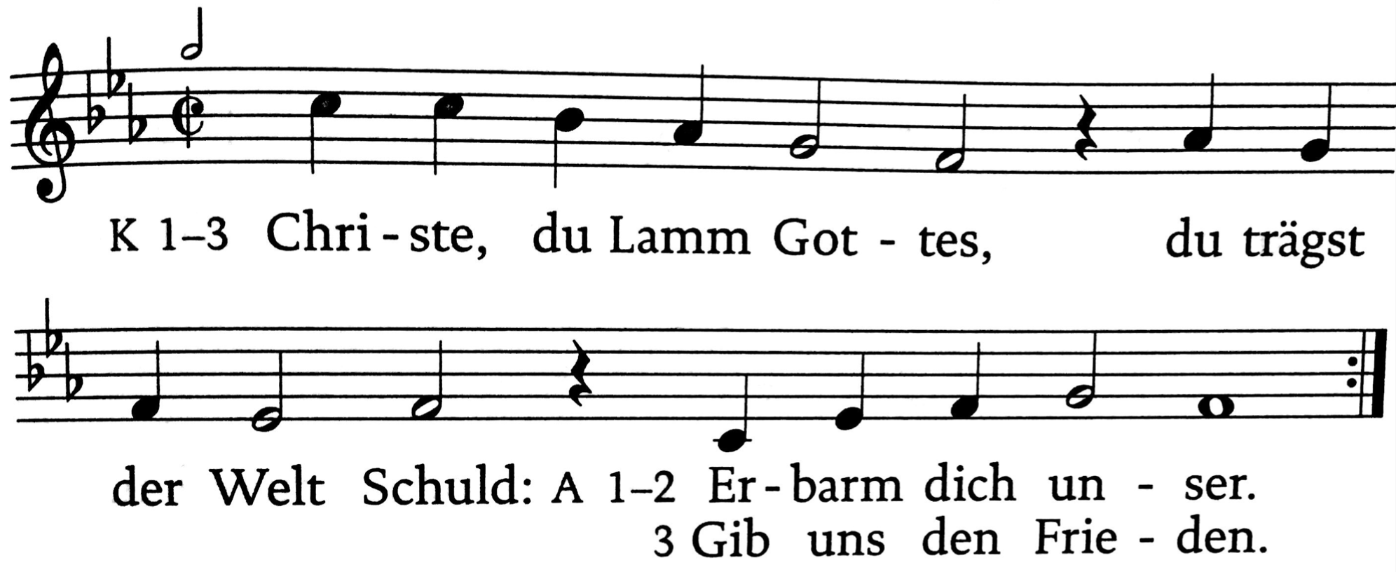 Christus ist unser Friede und unsere Versöhnung. Deshalb bitten wir: Herr Jesus Christus, schau nicht auf unsere Sünden, sondern auf den Glauben deiner Kirche und schenke ihr nach deinem Willen Einheit und Frieden.