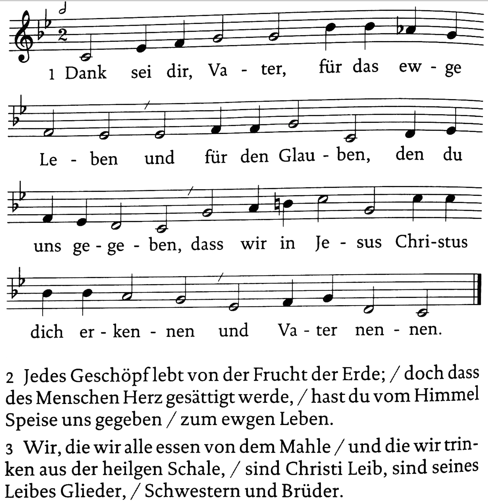 Bewahre die ganze Welt vor Hass und Ungerechtigkeit und stärke den Frieden zwischen den Völkern. - Verschone uns vor Not und Katastrophen, lass die Früchte der Erde gedeihen und segne unsere tägliche Arbeit.