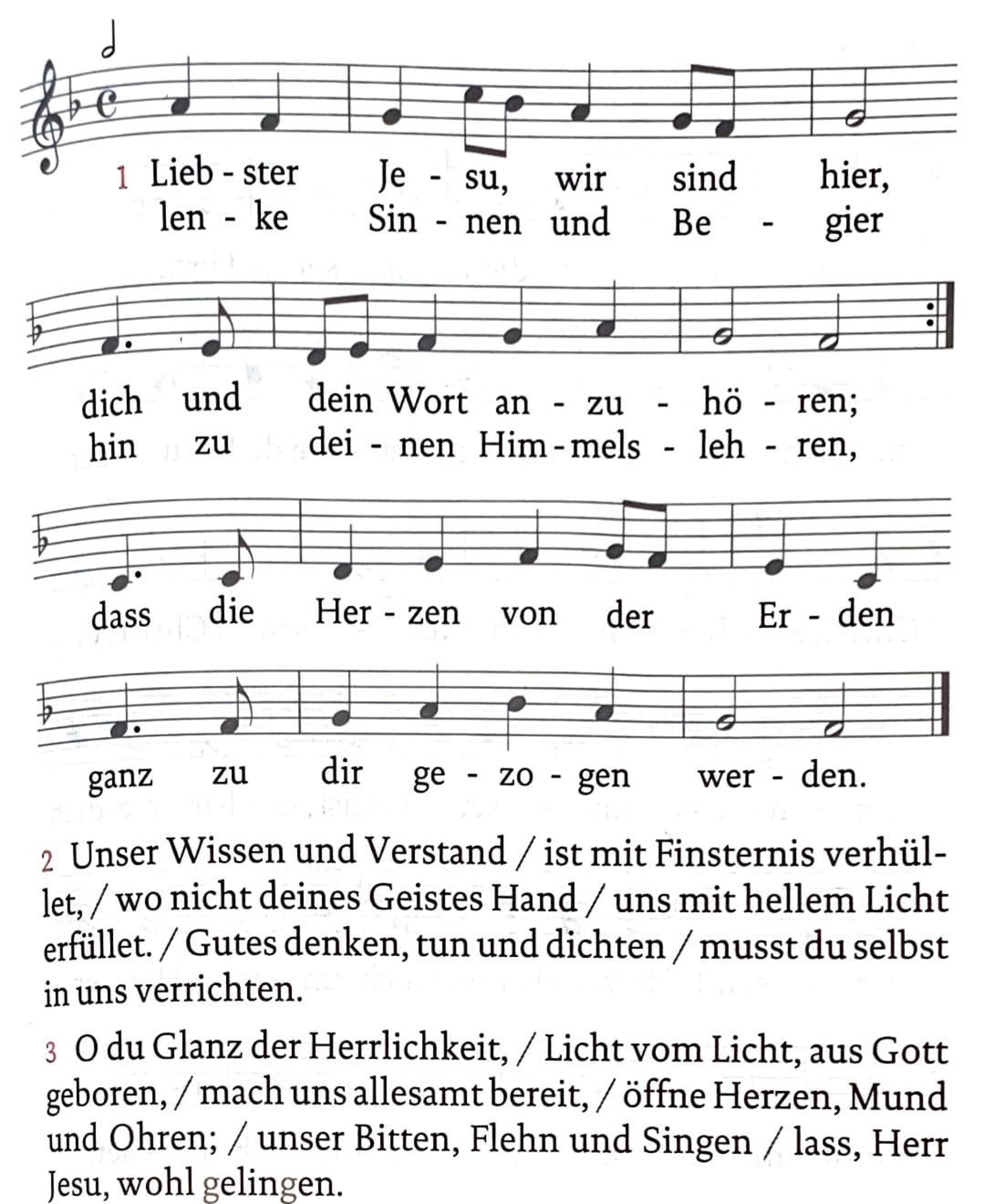 Ich bekenne Gott, dem Allmächtigen, und allen Brüdern und Schwestern, dass ich Gutes unterlassen und Böses getan habe – ich habe gesündigt in Gedanken, Worten und Werken durch meine Schuld, durch meine Schuld, durch meine große Schuld. Darum bitte ich die selige Jungfrau Maria, alle Engel und Heiligen und euch, Brüder und Schwestern, für mich zu beten bei Gott, unserem Herrn.