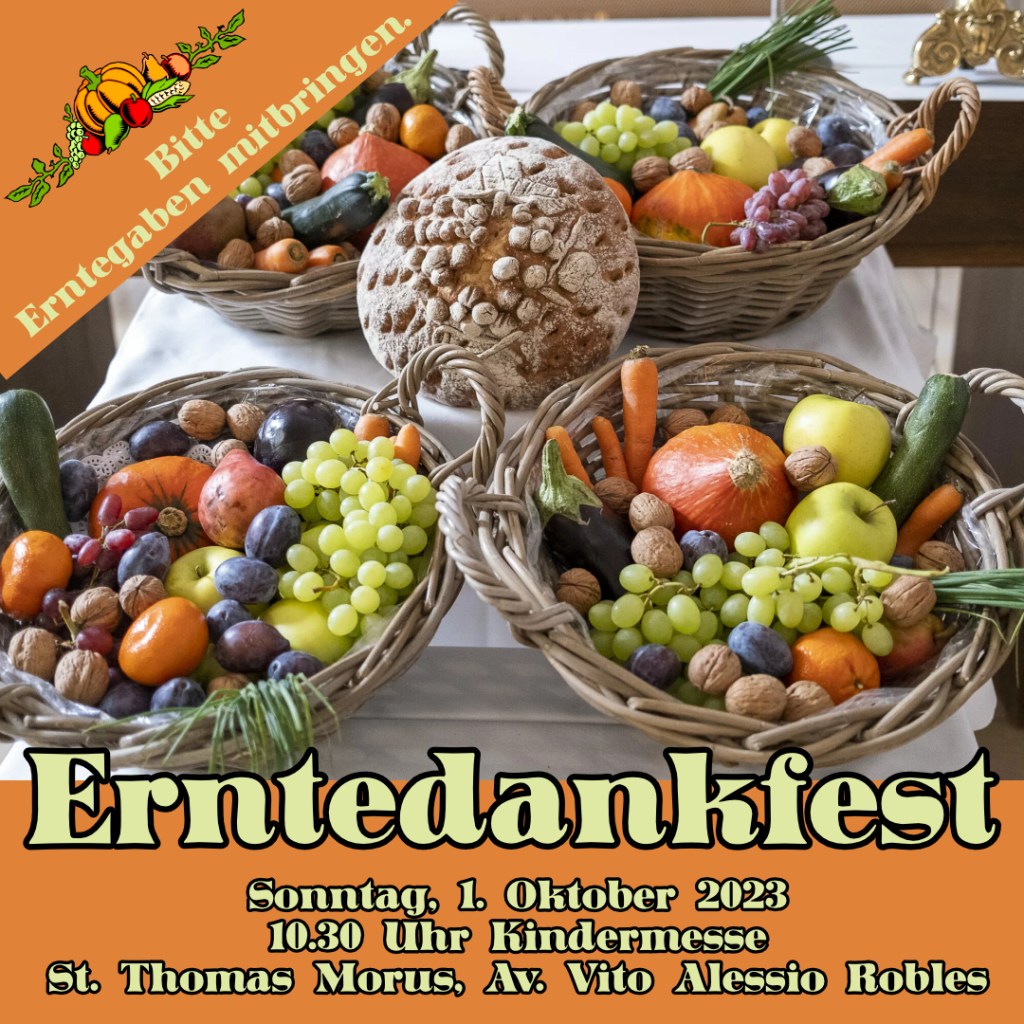 Gott, Schöpfer der Welt. Wir freuen uns heute über die Ernte dieses Jahres auf den Feldern und in unserem Leben. Segne diese Erntegaben, die wir dankbar aus deiner Hand empfangen haben. Lass auch die Armen und Hungernden den Reichtum deiner Güte erfahren und teilhaben an der Fülle deiner Gaben. Darum bitten wir durch Christus, unseren Herrn. Amen.