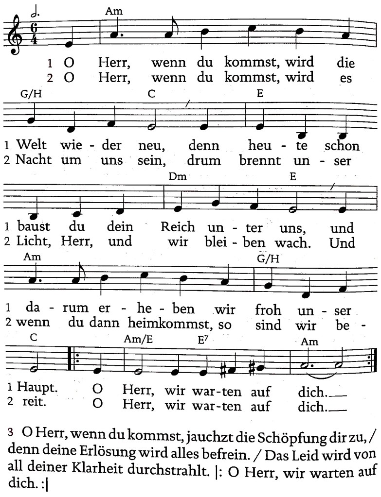 Erlöse un, Herr, allmächtiger Vater von allem Bösen und gib Frieden in unseren Tagen. Komm uns zu Hilfe mit deinem erbarmen und bewahre uns vor Verwirrung und Sünde, damit wir voll Zuversicht das Kommen unseres Erlösers Jesus Christus erwarten.