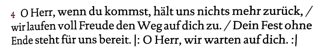Ich bekenne Gott, dem Allmächtigen, und allen Brüdern und Schwestern, dass ich Gutes unterlassen und Böses getan habe – ich habe gesündigt in Gedanken, Worten und Werken durch meine Schuld, durch meine Schuld, durch meine große Schuld. Darum bitte ich die selige Jungfrau Maria, alle Engel und Heiligen und euch, Brüder und Schwestern, für mich zu beten bei Gott, unserem Herrn.