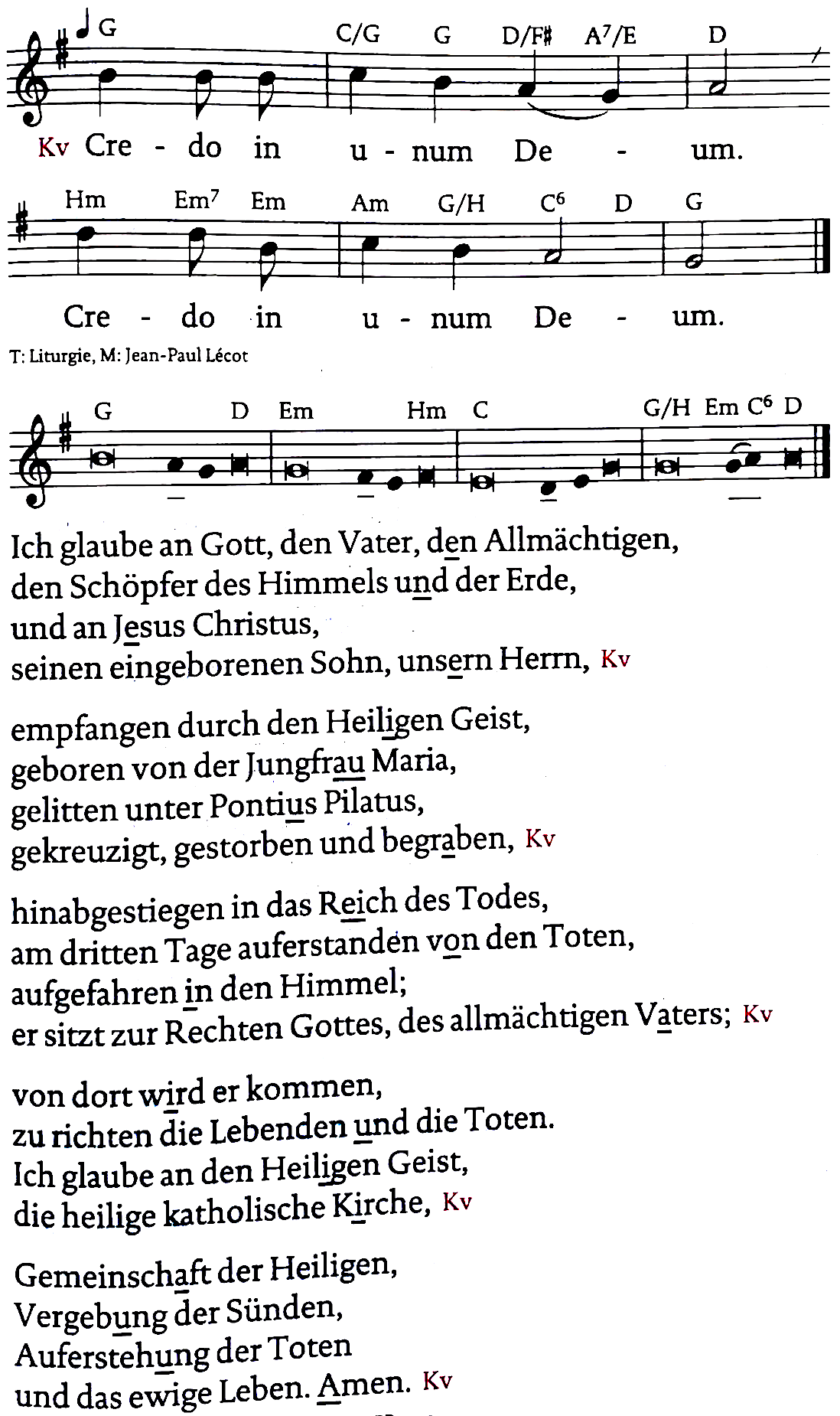 Ich bekenne Gott, dem Allmächtigen, und allen Brüdern und Schwestern, dass ich Gutes unterlassen und Böses getan habe – ich habe gesündigt in Gedanken, Worten und Werken durch meine Schuld, durch meine Schuld, durch meine große Schuld. Darum bitte ich die selige Jungfrau Maria, alle Engel und Heiligen und euch, Brüder und Schwestern, für mich zu beten bei Gott, unserem Herrn.