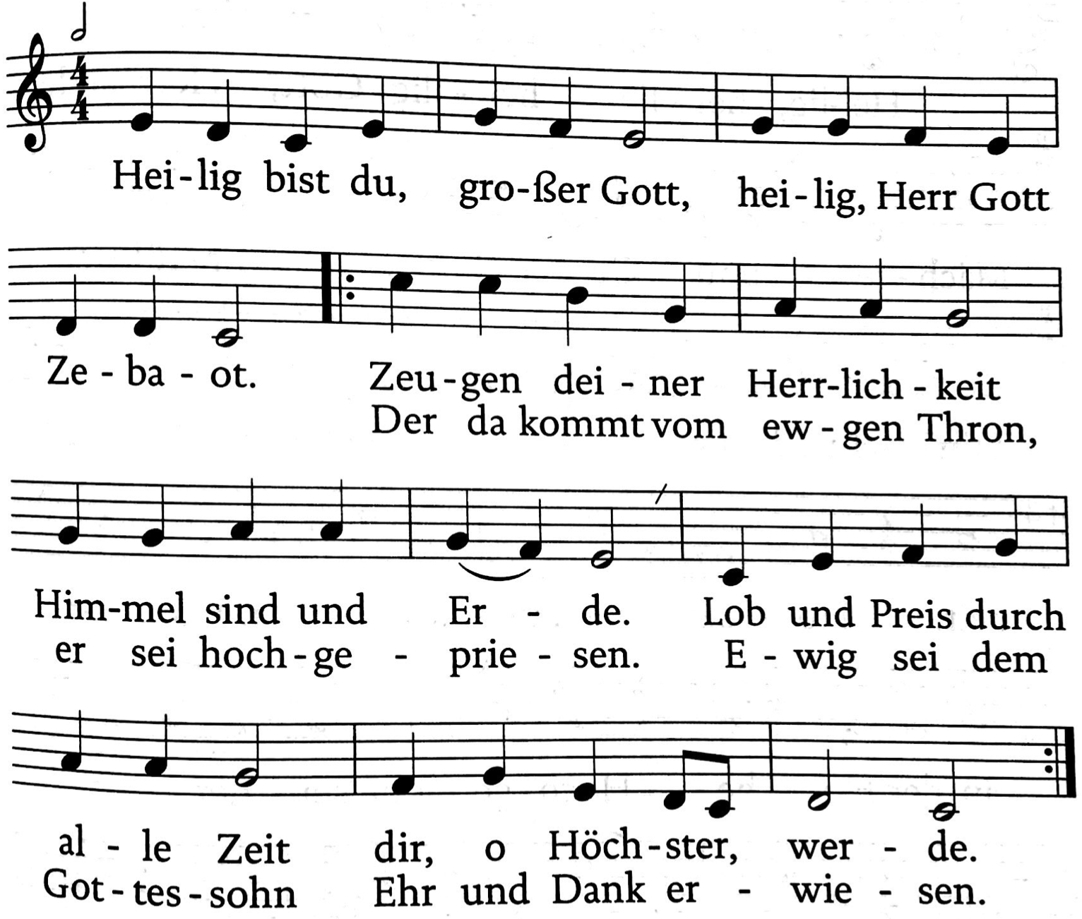 Der Herr sei mit euch. Und mit deinem Geiste. Erhebt die Herzen. Wir haben sie beim Herrn. Lasset uns danken dem Herrn, unserm Gott. Das ist würdig und recht.