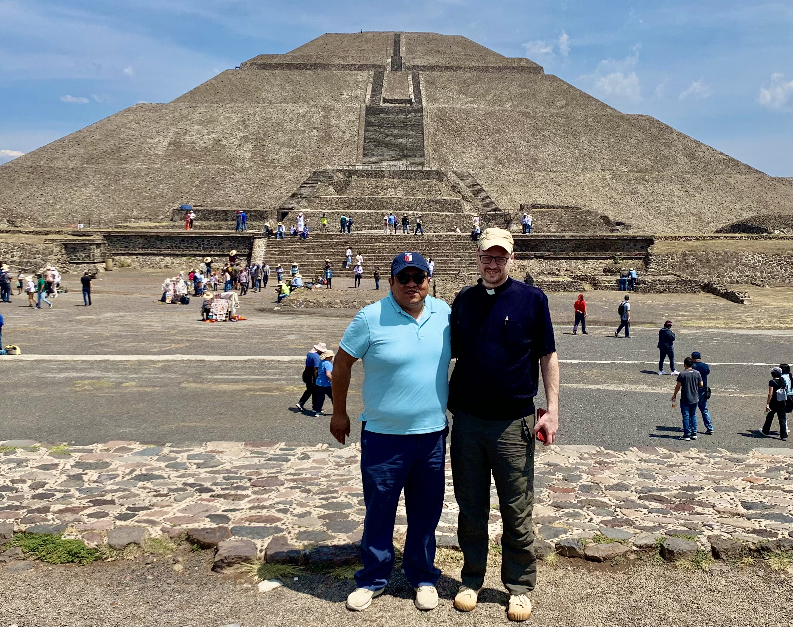 Pfarrer Alhard-Mauritz Snethlage zu Besuch in Mexiko Pfarrer Alhard ist Priester des Erzbistum Köln, von wo aus St. Thomas Morus viele Jahre seelsorglich betreut wurde. Alhard-Mauritz Snethlage wurde 2010 von Bischof Rainer-Maria Woelki zum Diakon geweiht. Seine letzte Stelle als Pfarrer in Deutschland war im Katholischen Kirchengemeindeverband „Obere Sieg“ in Wissen im Erzbistum Köln. Ende März 2023 war P. Alhard eine Woche zum Kennenlernbesuch in Mexiko. Bei dieser Gelegenheit konnte er zwei Erstkommunionen mitfeiern: in Mexiko-Stadt und in Puebla. Auch eine Begegnung mit der deutschen Pastorin Stefanie Hoppe stand auf dem Programm. P. Alhard bei seinem Besuch bei den Pyramiden von Tenochtitlán zusammen mit P. Pedro. Besuch in einem der ersten Franziskanerklöster in Mexiko. Abendessen mit einem Teil des Kirchenvorstandes (Juliane, Andrea, Regina und Ludwig) im Pfarrhaus von St. Thomas Morus. Im Innenhof des Barrockmuseums von Puebla. Sonnenuntergang zwischen den Vulkanen Popocatéptl und Iztaccihuatl in Puebla. Zu Gast auf einer Familienfeier in Mexiko-Stadt. Herzlichen Willkommen in Mexiko, Padre Alhard! Teilen mit: Klicke, um auf X zu teilen (Wird in neuem Fenster geöffnet) X Klicken, um einem Freund einen Link per E-Mail zu senden (Wird in neuem Fenster geöffnet) E-Mail Klicken, um auf WhatsApp zu teilen (Wird in neuem Fenster geöffnet) WhatsApp Klick, um auf Facebook zu teilen (Wird in neuem Fenster geöffnet) Facebook Gefällt mir Wird geladen …