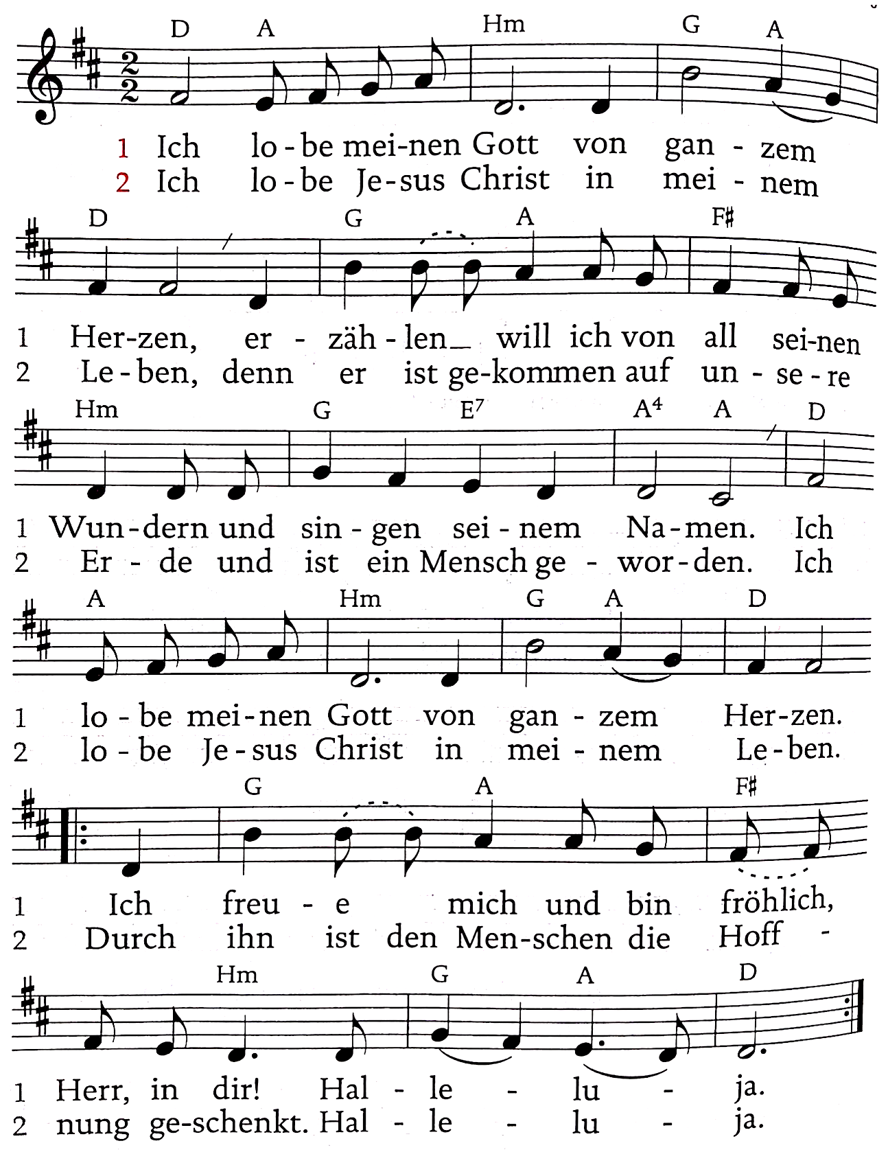 Ich bekenne Gott, dem Allmächtigen, und allen Brüdern und Schwestern, dass ich Gutes unterlassen und Böses getan habe – ich habe gesündigt in Gedanken, Worten und Werken durch meine Schuld, durch meine Schuld, durch meine große Schuld. Darum bitte ich die selige Jungfrau Maria, alle Engel und Heiligen und euch, Brüder und Schwestern, für mich zu beten bei Gott, unserem Herrn.